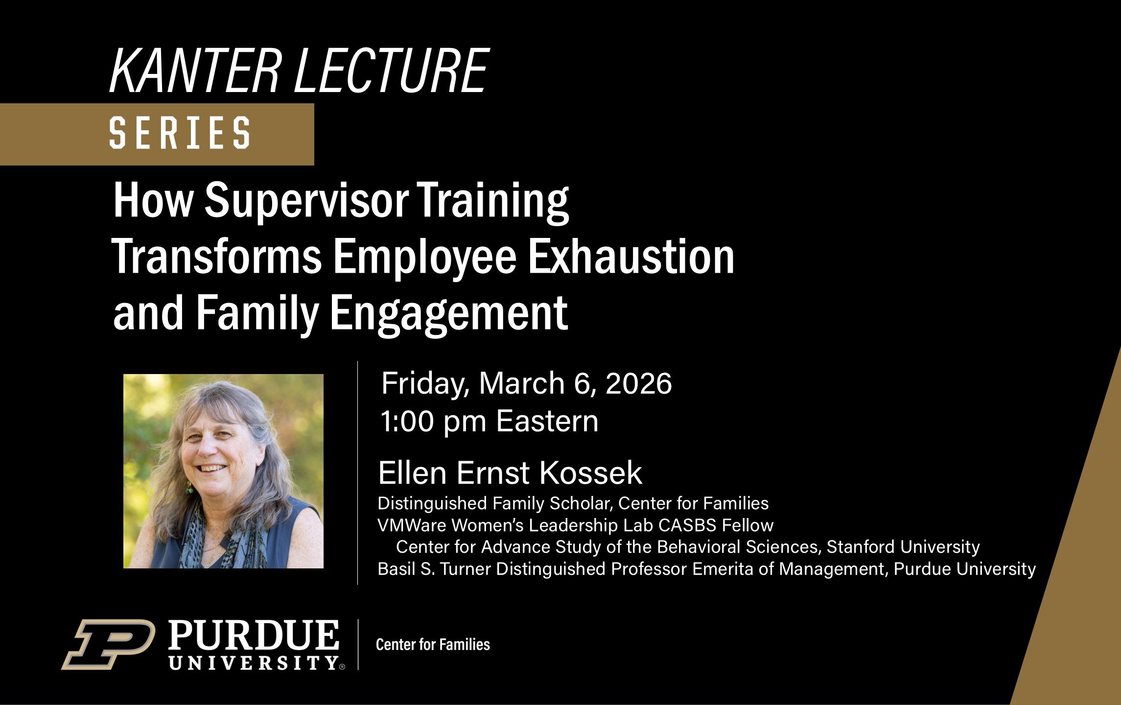 The Kanter Lecture Series brings quality research to campus from one of the nominated articles, selected from the annual Rosabeth Moss Kanter Award for Excellence in Work-Family Research recipients.