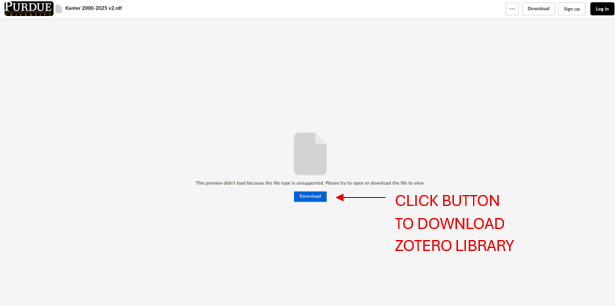 The Zotero Library file is archived in Purdue University folders on Box.com