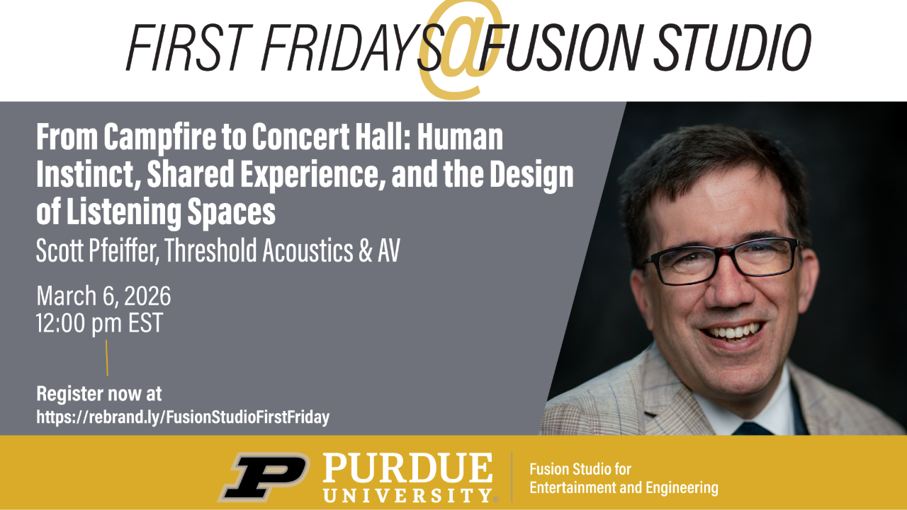 First Fridays @ Fusion Studio one-hour virtual workshops provide a monthly opportunity to discuss emerging trends in technology in the entertainment industry, engage with industry experts and practitioners, and explore scholarly works.